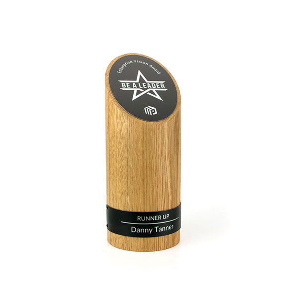 Solid oak pillar award with tapered top