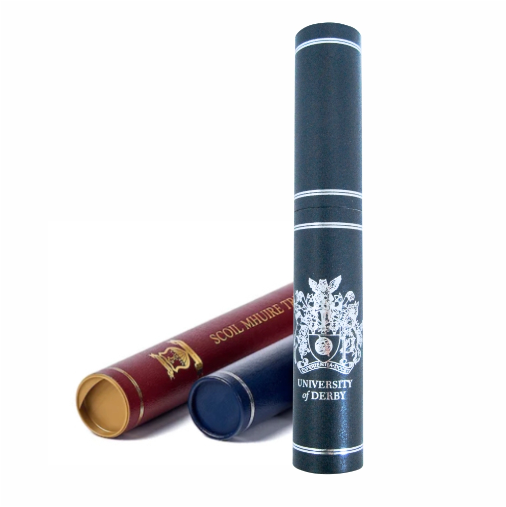 Manufactured from 100% recycled board with a coloured leatherette outer finish, these prestige Certificate Presentation Tubes are used around the world for Certificates, Diplomas and Presentations by colleges, universities, police services and professional bodies.