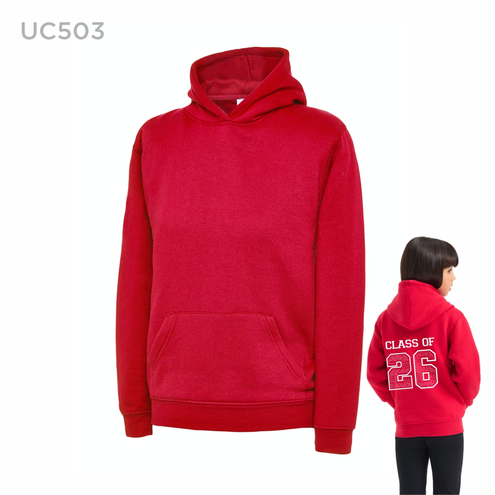 50% polyester, 50% cotton, double fabric hood, front pouch pocket