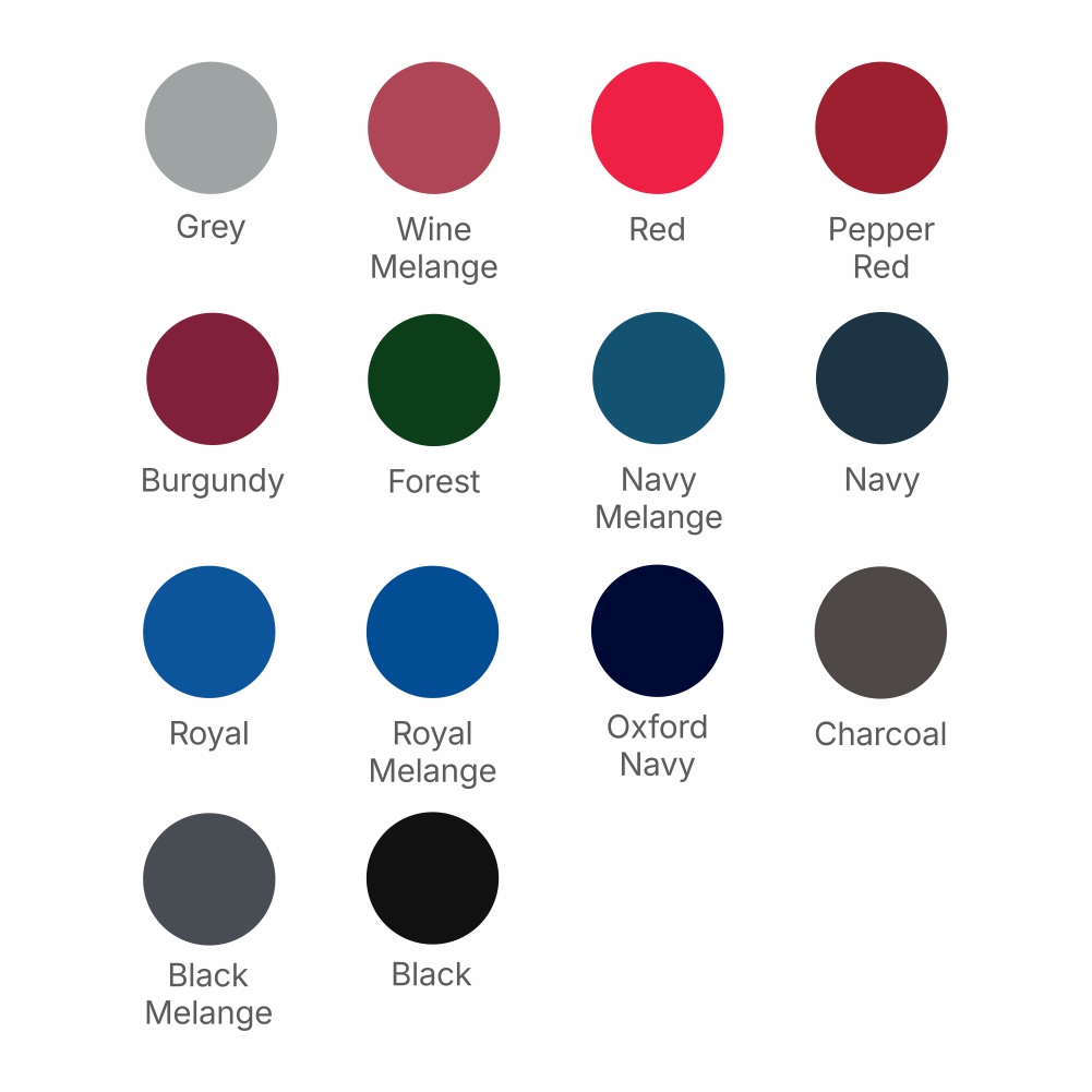 Colours: Black, Grey, Red, Black Melange, Burgundy, Charcoal, Forest, Navy, Navy Melange, Oxford Navy, Pepper Red, Royal, Royal Melange