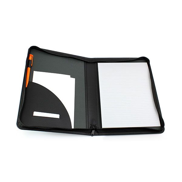 The zipped folder has an internal pocket and pen loop