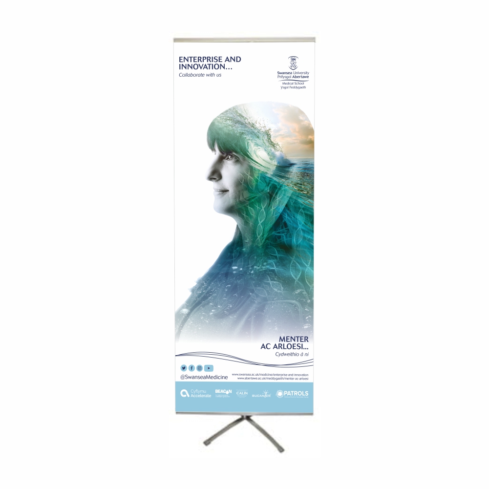 High end beautifully designed static banner stands, with full colour printed fabric graphics.