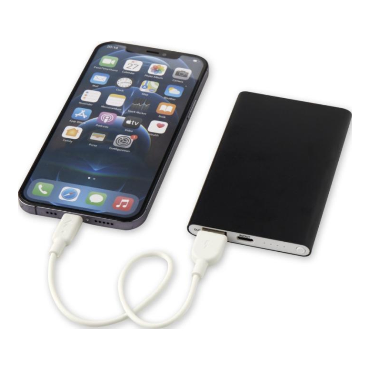 Easily charge the power bank or your device via the Type-C in/output port and/or use the USB-A port to charge 2 devices simultaneously. The power bank is made of 25% RCS certified recycled aluminium, and features a 4000 mAh lithium polymer battery which delivers a total output power of max. 10W. Includes a TPE Type-C to USB-A charging cable. Recycled Aluminium. Large print area!