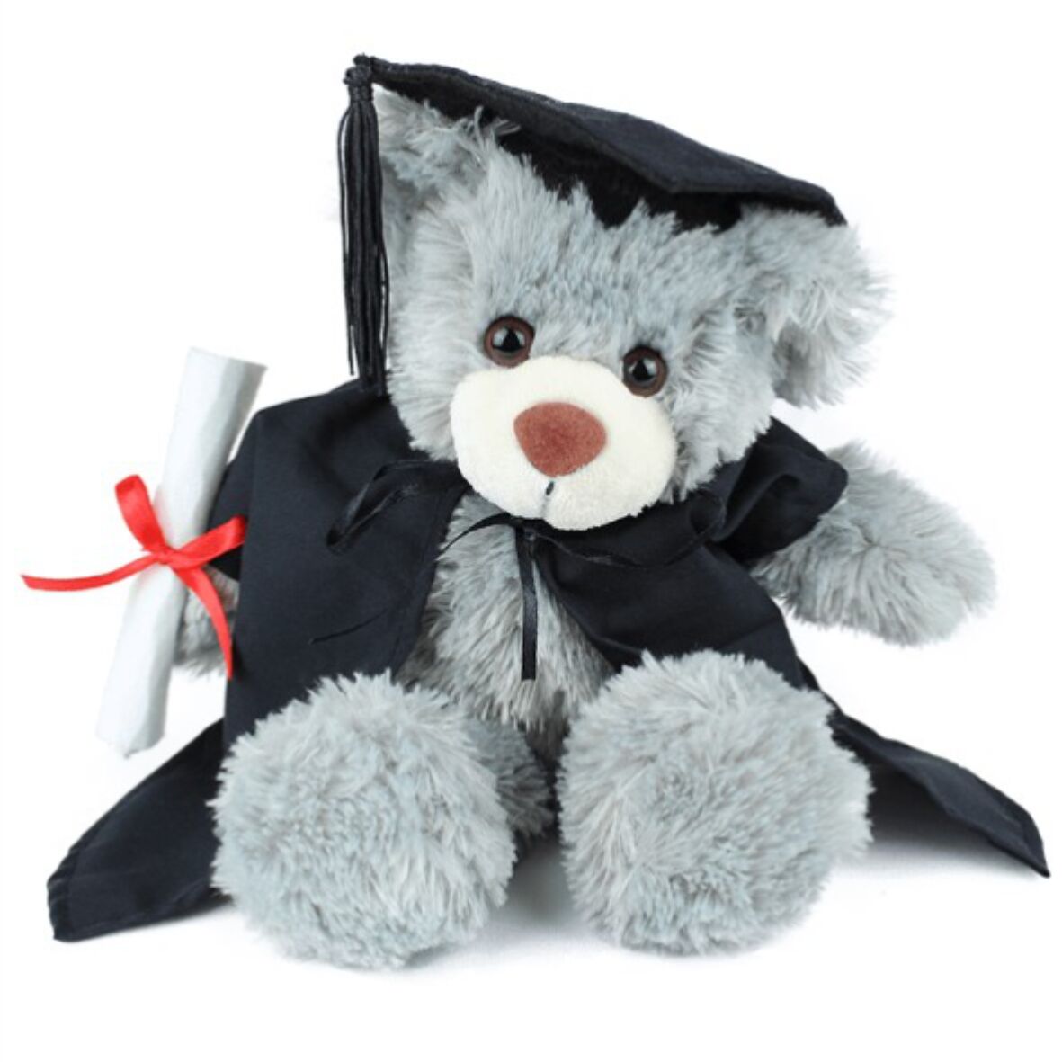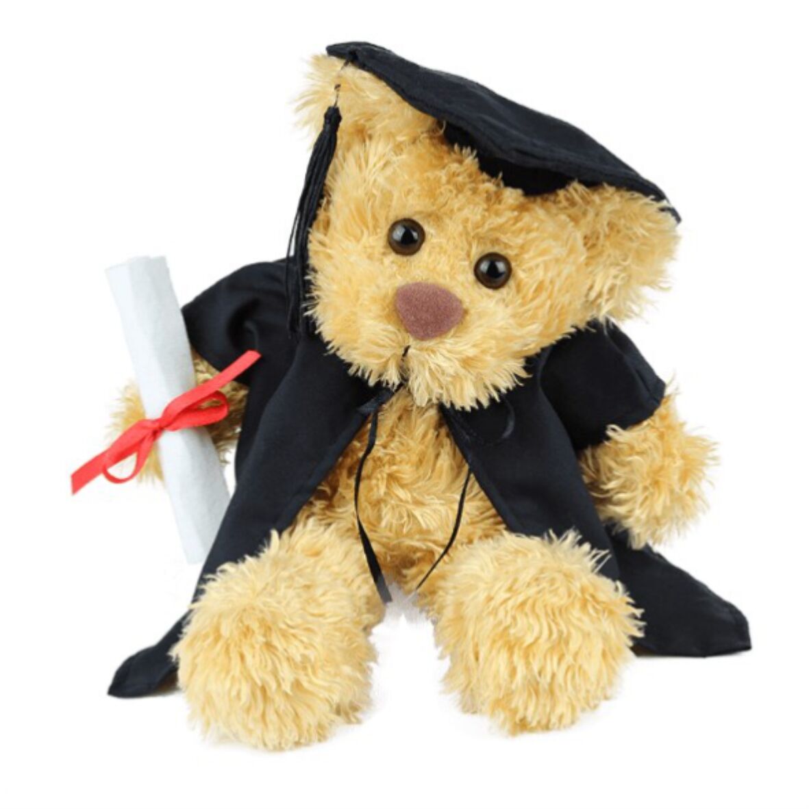 Our graduation bears are dressed with mortar board, gown and hold a diploma.