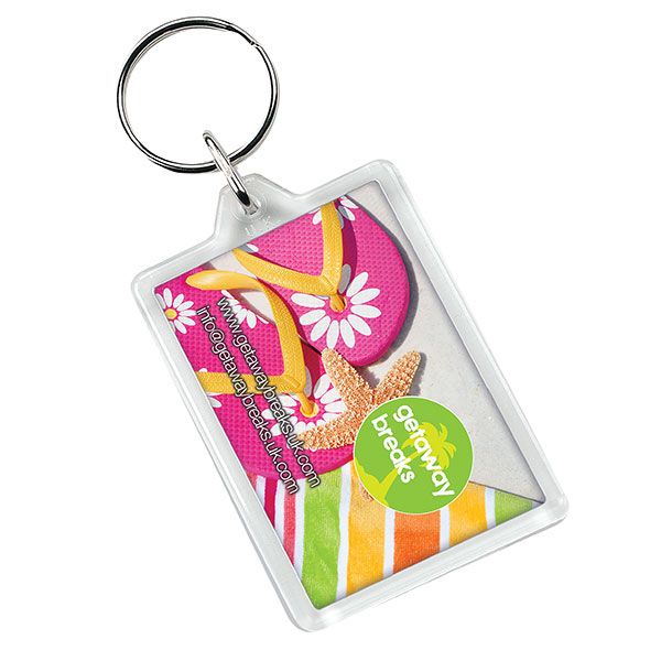 Clear rectangular key chain with metal split ring